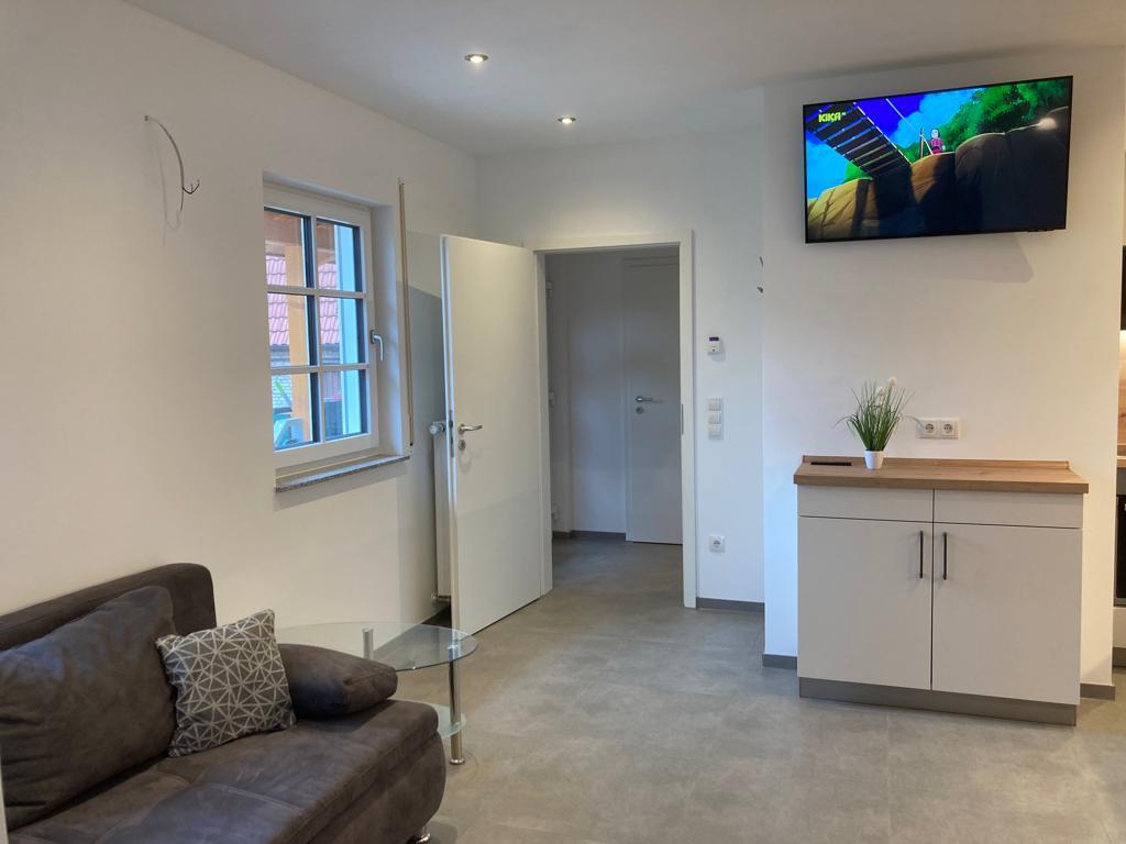 - gemütliche, voll ausgestattete Wohnküche mit Kühlschrank, Herd mit Backofen, Spülmaschine, Kaffeemaschine, Wasserkocher, Essecke, Sofa und großem Sat-TV